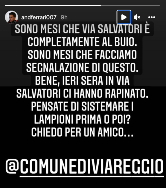 “Well, yesterday evening in Via Salvatori, they have robbed us. Think of arranging the lamps sooner or later? Asking for a friend.”