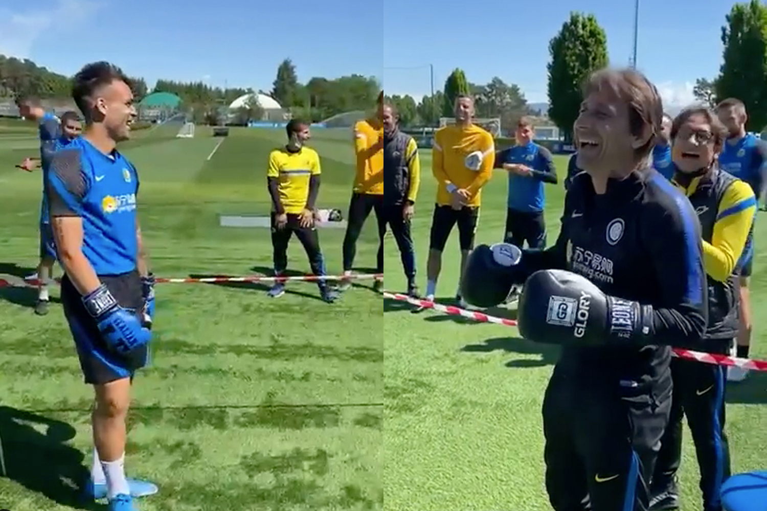 Conte shared footage of Romelu Lukaku stepping in and performing his best Bruce Buffer impression as he introduced him and Martinez in front of the Inter squad.