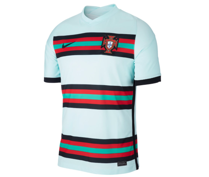 This black, red and dark teal striped away kit really is stunning. It’s a common scheme for the Portuguese to go with but between the pattern and the v-neck, it’s actually quite a unique twist that we’re all probably used to.