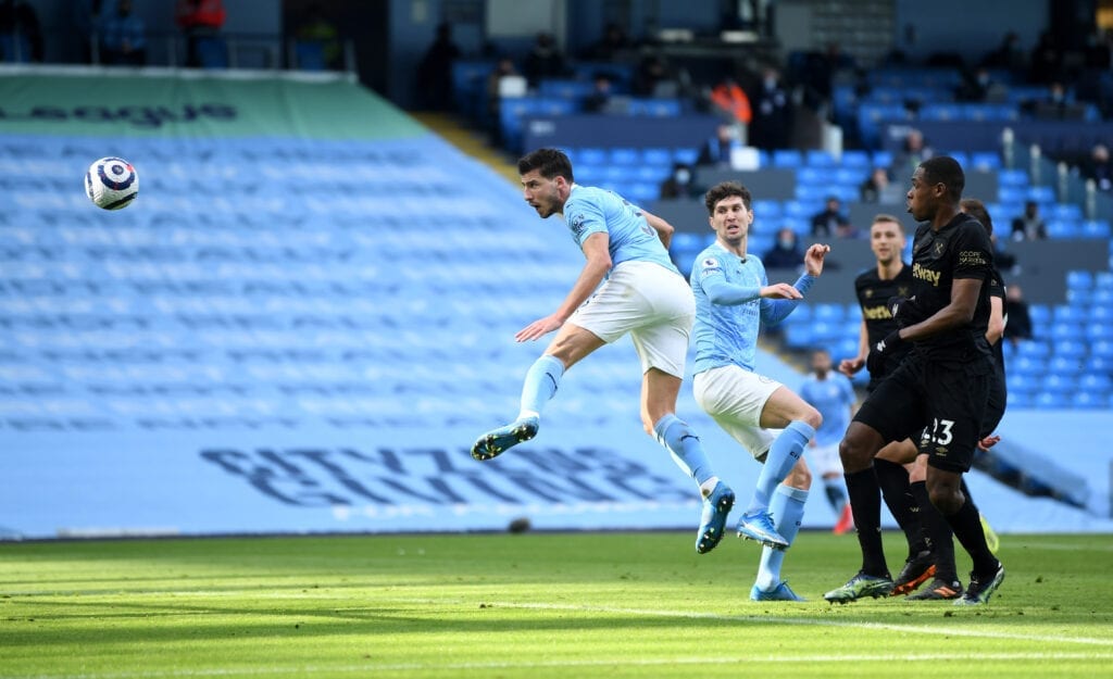 Ruben Dias opened the scoring with his first goal in a City shirt during the game. He met Kevin de Bruyne‘s inch-perfect cross with a powerful header that went beyond Hammers’ keeper Darren Randolph.
